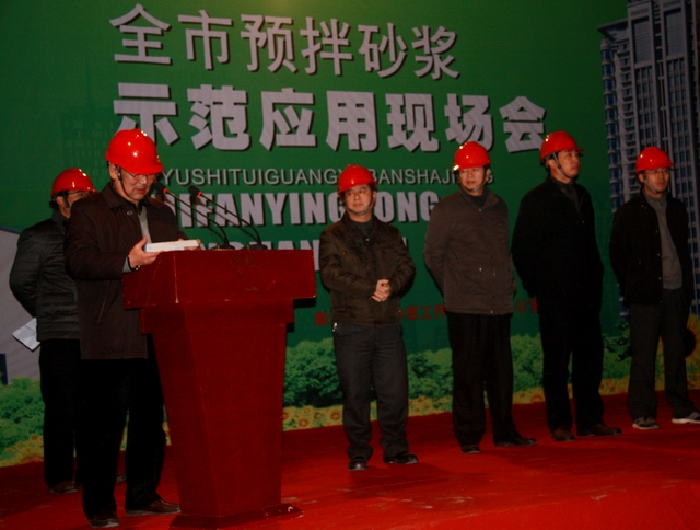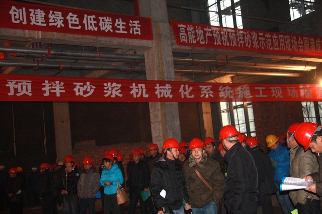 2013年1月8日,新余市預拌砂漿示范應用現場會在高能上城62#樓2層順利召開。市工信委、市建管局、市質監(jiān)站、全市各建設單位、預拌砂漿生產企業(yè)、監(jiān)理單位和施工單位相關人員出席參加。高能上城62#樓的施工人員現場講解和展示了預拌砂漿機械化系統施工工藝。預拌砂漿比現場攪拌砂漿具有7大優(yōu)點:質量穩(wěn)定、品種豐富、文明施工、提高工效、節(jié)能降耗、降低綜合成本以及功能優(yōu)異獨特。