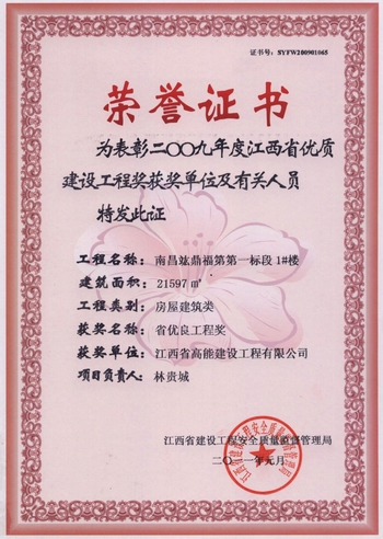 竑鼎福第獲獎(jiǎng)證書(shū)