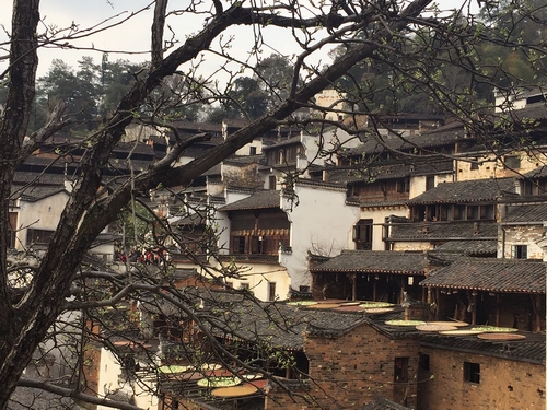 婺源篁嶺,是作為至今保留較為完好的山居古村落,吸引著四方游客,她以“曬秋”“天待九巷”特有的民俗及徽派景觀展示著當(dāng)?shù)赜凭玫牡赜蛭幕钌畹匚朔接慰?。我不禁?dān)心起來,那寧靜的鄉(xiāng)村古屋、靜謐的小橋、潺潺的流水,會不會被爆閃的燈光、嘈雜的廣播所襲擾。婺源的山水很純樸,即使飽受游人攪擾,但她依然還是靜靜地在那,很美......,婺源的美就是可以把所有的人和事都攬成為風(fēng)景。
