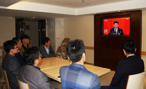 10月18日上午八點五十,高能黨總支第三黨支部組織全體黨員、員工集中收看黨的十九大開幕實況,部分監(jiān)理項目部在項目駐地觀看了黨的十九大開幕。