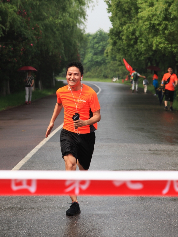 八點二十分,隨著裁判長一聲令下,大家簇擁前行。起跑不久,天空下起了大雨,許多隊員撐傘前進,但更多隊員是冒雨前行。大家奮勇當(dāng)先,你追我趕,在奔跑中盡情揮灑。