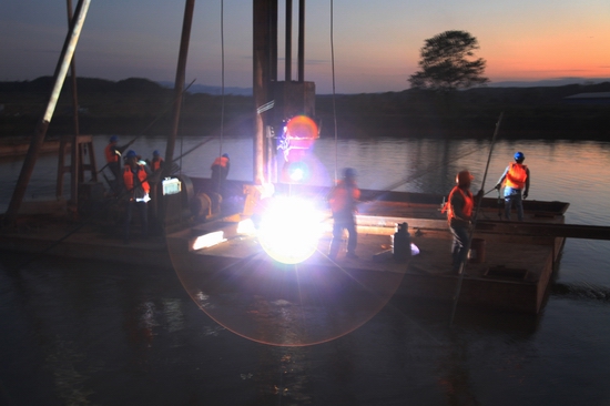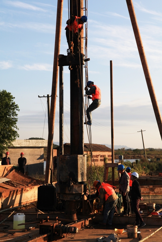 2018年1197點(diǎn)56分,水面彌漫著薄薄的曉霧,岸邊彩旗飄飄,伴隨著喜慶的鞭炮聲,轟鳴的打樁機(jī)正式開機(jī)打入第一根樁,并順利就位。完成第一根樁的施工,標(biāo)志著1個月緊張、有序、高效的前期工作,取得了第一步的成功,也意味著由高能集團(tuán)參股投資、高能建工EPC總承包的萬安旭陽光伏扶貧發(fā)電項(xiàng)目已進(jìn)入主體施工階段,該項(xiàng)目的工作人員將要挑戰(zhàn)更大的壓力、更緊張的工作,最終實(shí)現(xiàn)1226日項(xiàng)目驗(yàn)收的工期目標(biāo)。