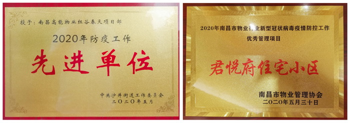 2020年6月3日,在南昌市物業(yè)管理協(xié)會(huì)舉辦的“南昌市物業(yè)服務(wù)行業(yè)在新型冠狀病毒疫情防控工作中表現(xiàn)突出的先進(jìn)集體、優(yōu)秀管理項(xiàng)目”表彰大會(huì)上,江西高能物業(yè)管理有限公司(以下簡稱“高能物業(yè)”)服務(wù)的君悅府住宅小區(qū)被評為優(yōu)秀管理項(xiàng)目。這是繼2020年5月高能物業(yè)紅谷春天服務(wù)中心獲中共沙井街道工作委員會(huì)“防疫工作先進(jìn)單位”之后的又一殊榮。
