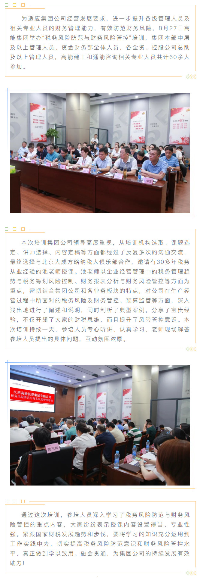 高能集團(tuán)開展“稅務(wù)風(fēng)險(xiǎn)防范與財(cái)務(wù)風(fēng)險(xiǎn)管控”培訓(xùn)