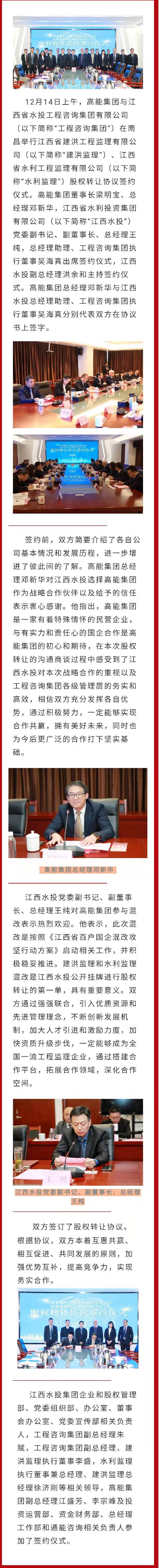 高能集團(tuán)與江西省水投工程咨詢集團(tuán)有限公司舉行股權(quán)轉(zhuǎn)讓協(xié)議簽約儀式