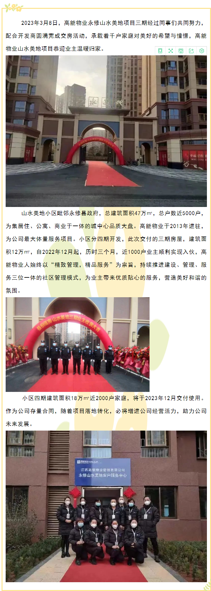 精致管理,精品服務(wù),歡迎業(yè)主回家 ——高能物業(yè)山水美地項(xiàng)目順利交房