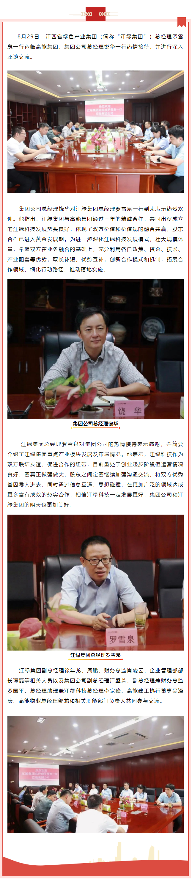 江西省綠色產(chǎn)業(yè)集團(tuán)總經(jīng)理羅雪泉一行蒞臨高能集團(tuán)座談交流