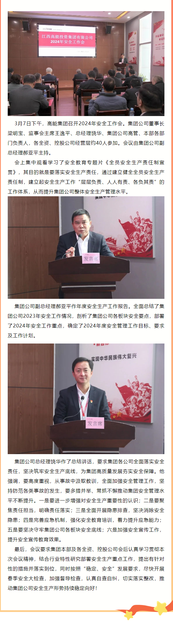 全面落實(shí)安全生產(chǎn)責(zé)任,堅(jiān)決筑牢安全生產(chǎn)底線,為集團(tuán)高質(zhì)量發(fā)展夯實(shí)安全保障——高能集團(tuán)召開2024年安全工作會(huì)