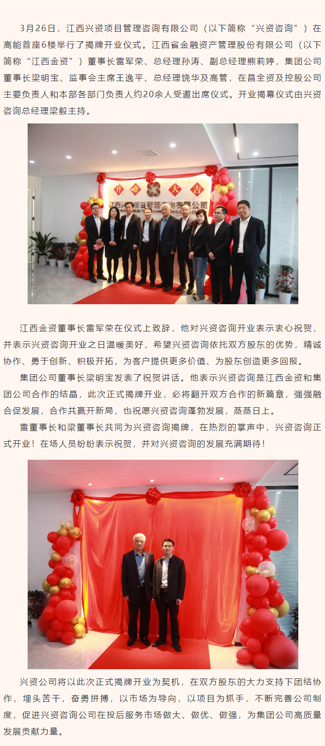 強強融合促發(fā)展,合作共贏開新局——江西興資項目管理咨詢有限公司正式揭牌開業(yè)